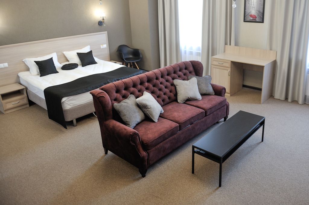Комфортный номер увеличенной площади, с прекрасным видом и удобной мебелью, подойдет как для отдыха семейной пары с ребенком, так и гостей, приехавших в город по работе. Для Вашего комфорта в номерах категории Standard Plus предоставляется чайная станция (чай, сахар при заезде), а так же журнальный столик с креслами.Услуги и удобства