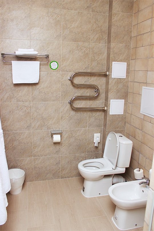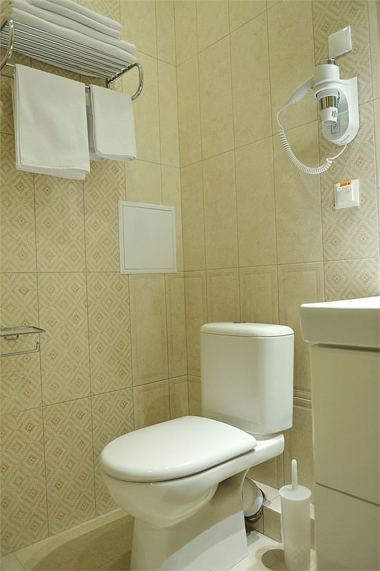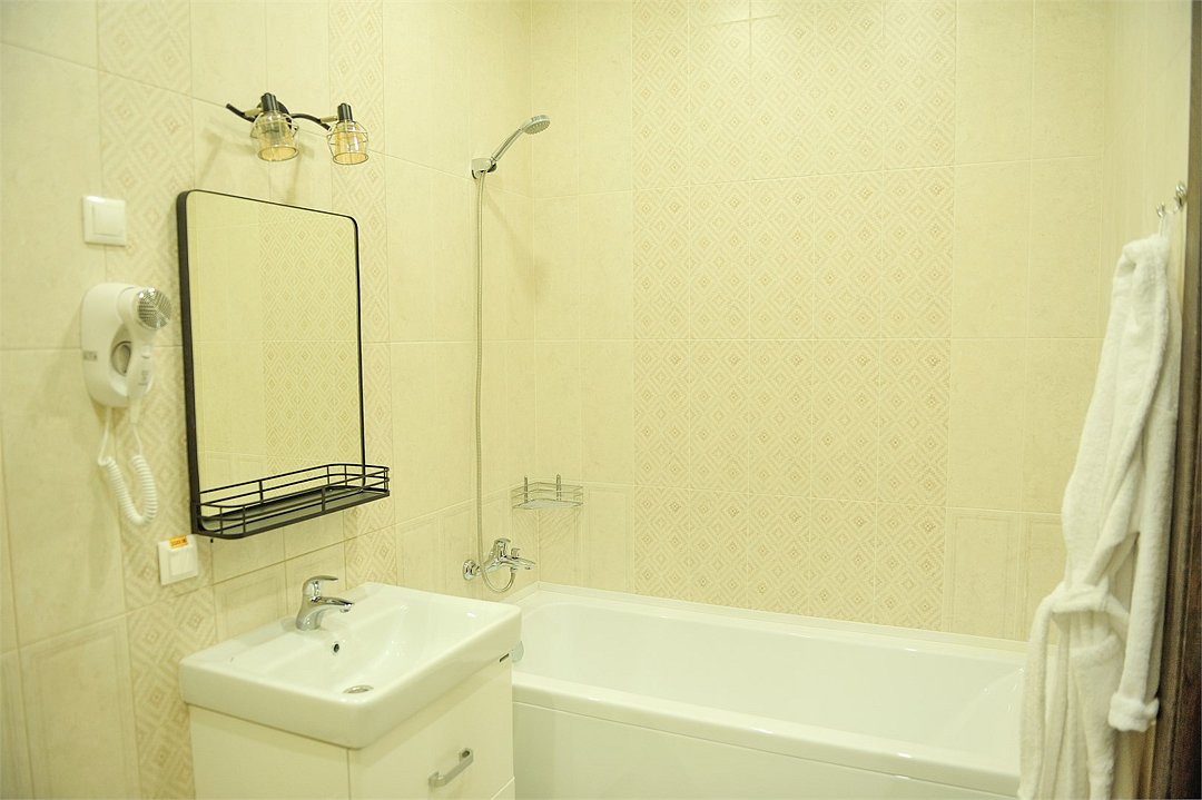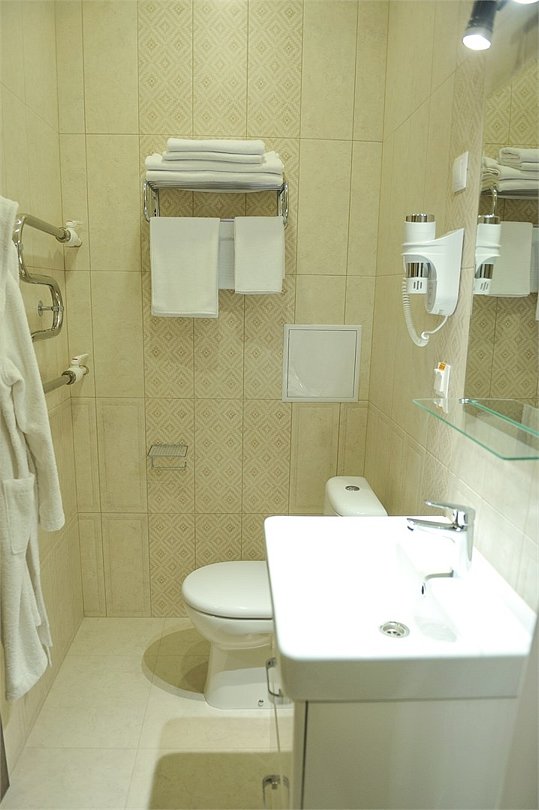 Номер уютно обставлен и оснащён необходимым, чтобы отдохнуть после долгого и насыщенного дня. Имеются телевизор и халат. Оснащение зависит от выбранной категории номера.