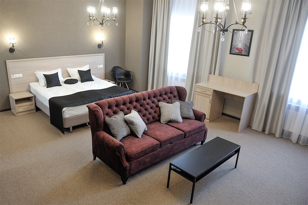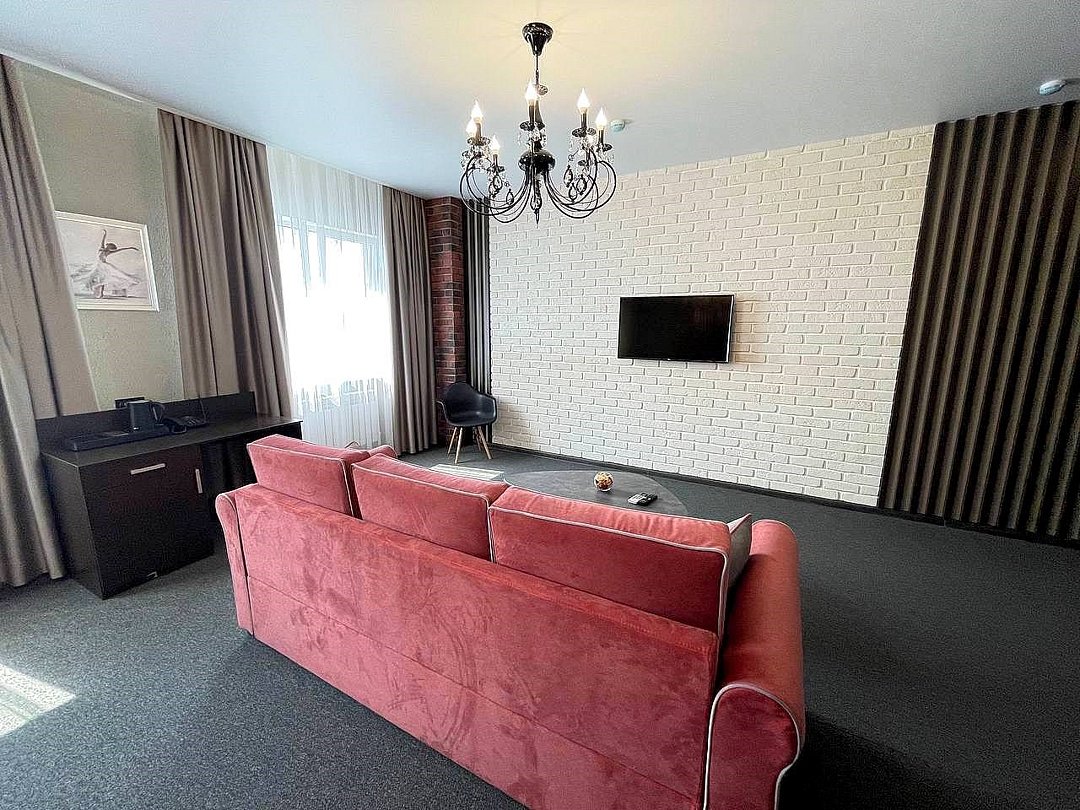 Современный, просторный однокомнатный номер площадью 42 кв.м, с оригинальной дизайнерской отделкой, подойдет для одно- или двухместного размещения. Это идеальный номер для молодоженов, но здесь будет комфортно и семейной паре с детьми, и гостям, посетившим город по рабочим вопросам. Для Вашего комфорта в номерах категории Junior Suite предоставляется чайная станция (чай, сахар при заезде), одноразовые косметические и гигиенические средства.Услуги и удобства