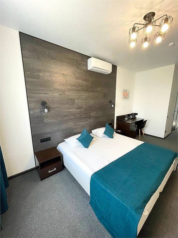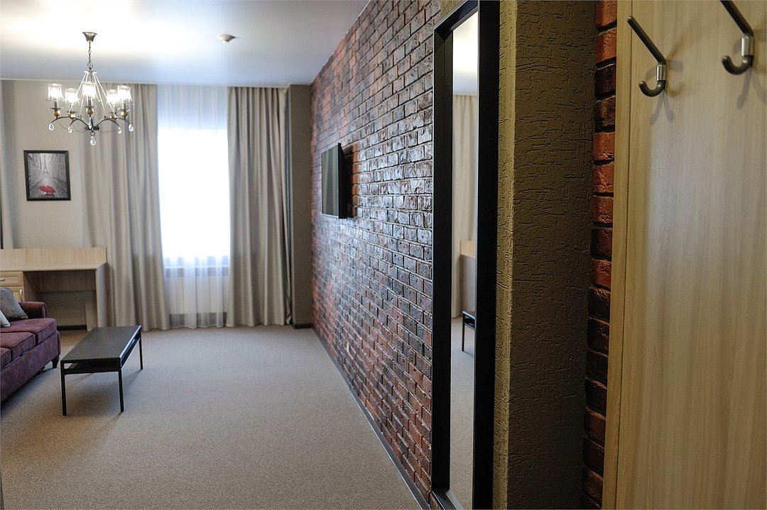 Современный, просторный однокомнатный номер площадью 42 кв.м, с оригинальной дизайнерской отделкой, подойдет для одно- или двухместного размещения. Это идеальный номер для молодоженов, но здесь будет комфортно и семейной паре с детьми, и гостям, посетившим город по рабочим вопросам. Для Вашего комфорта в номерах категории Junior Suite предоставляется чайная станция (чай, сахар), халат, одноразовые косметические средства. В данном номере на 4 этаже - тропический душ.Услуги и удобства