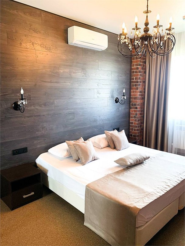 Современный, просторный однокомнатный номер площадью 42 кв.м, с оригинальной дизайнерской отделкой, подойдет для одно- или двухместного размещения. Это идеальный номер для молодоженов, но здесь будет комфортно и семейной паре с детьми, и гостям, посетившим город по рабочим вопросам. Для Вашего комфорта в номерах категории Junior Suite предоставляется чайная станция (чай, сахар при заезде), одноразовые косметические средства. В данном номере на 3 этаже - тропический душ.Услуги и удобства