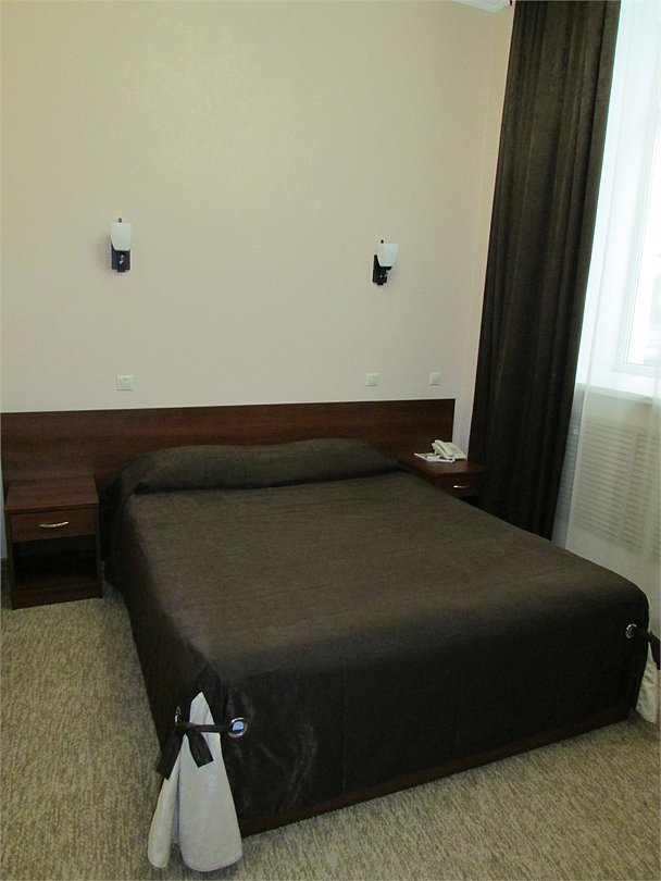 Номер с двуспальной кроватью, ванной комнатой и принудительной вентиляцией, так как окно отсутствует, есть его имитация. Данный факт абсолютно не влияет на качество проживания и данная категория номера наиболее продаваемая в гостинице. Отсутствуют шум с улицы, очень тихий номер.Услуги и удобства