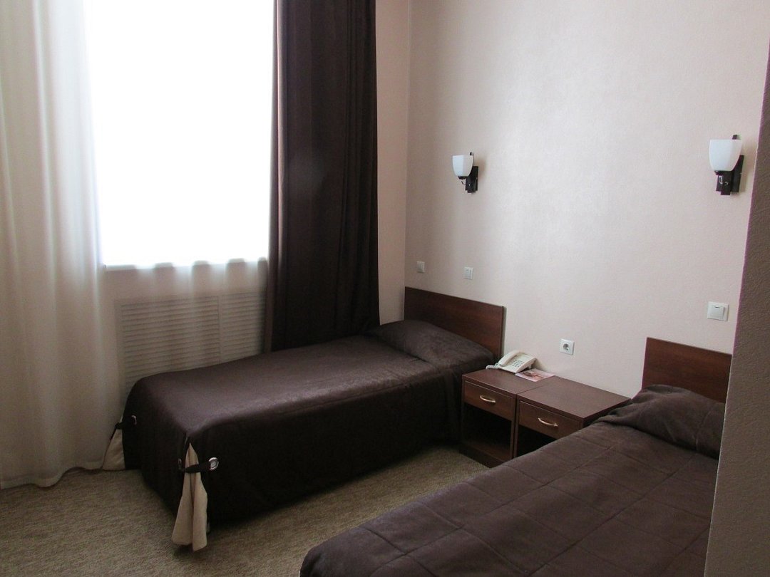 Wi-Fi, кондиционер, ванная комната, душевая кабина, банные полотенца, тапочки, две односпальные кровати, стулья, письменный стол, зеркало, обслуживание номеров, информационная карта, меню, унитаз, раковина, ковровое покрытие, душ, кулер на этаже, вид во двор, стаканы, туалетные средства, туалет, внутренний телефон, телевизор с плоским экраном, мини-холодильник, шкаф-купе, гостиничная парфюмерия, номер для некурящих, можно с питомцамиВ номере