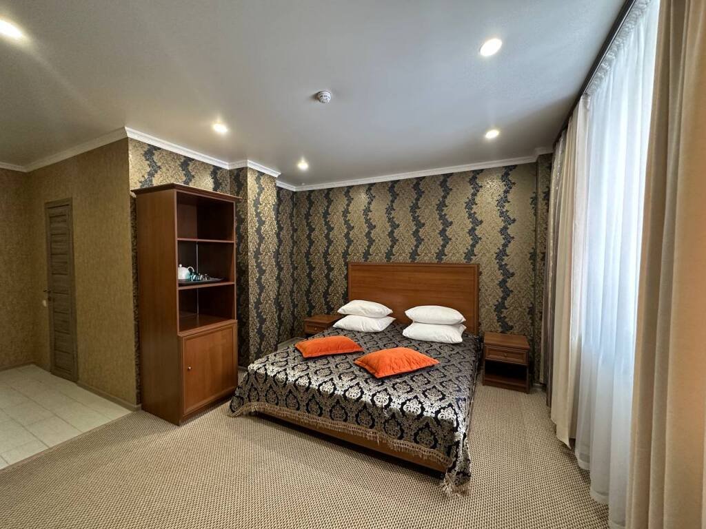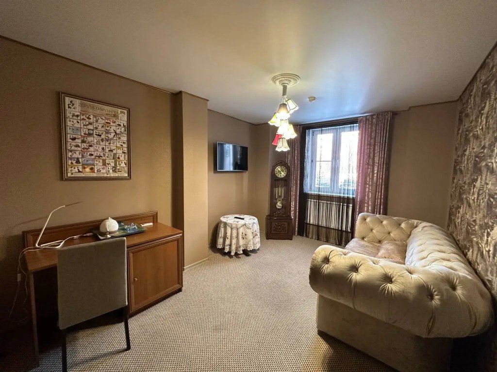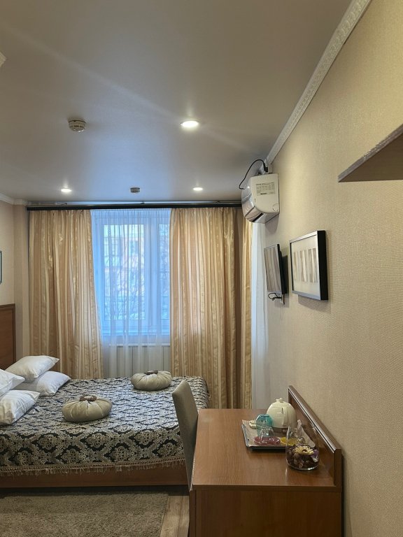 Номер уютно обставлен и оснащён необходимым, чтобы отдохнуть после долгого и насыщенного дня. Имеются телевизор и халат. Оснащение зависит от выбранной категории номера.