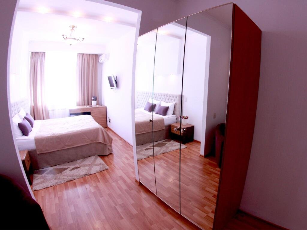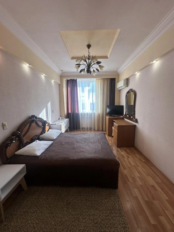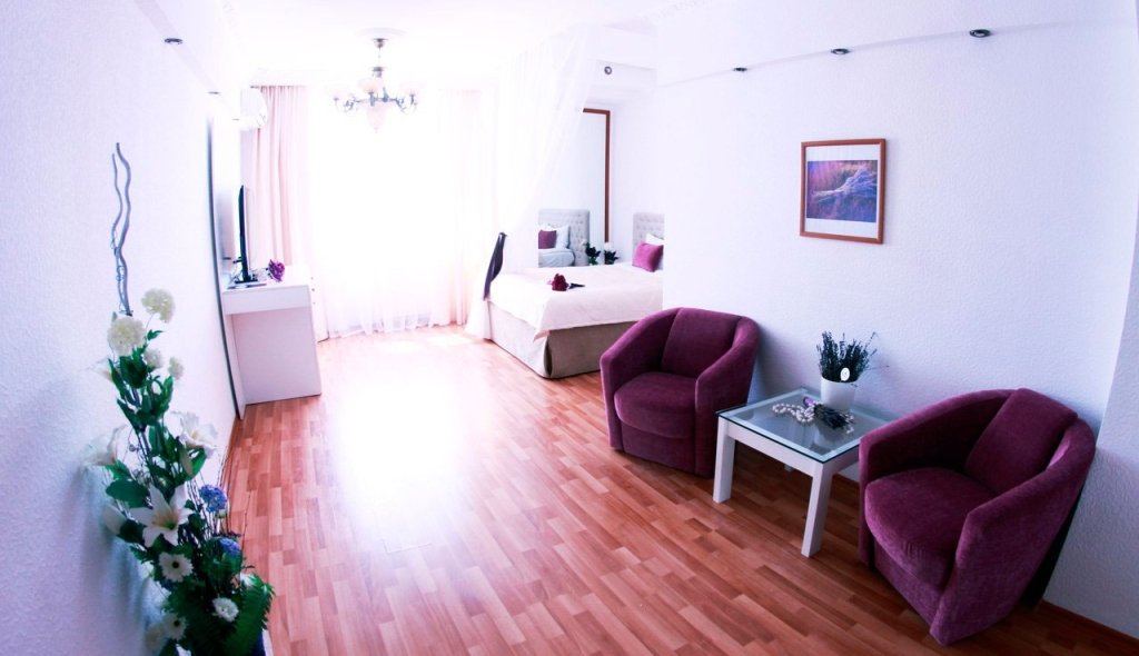 В номере вы найдёте телевизор и халат. Оснащение зависит от выбранной категории номера.