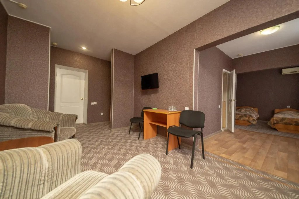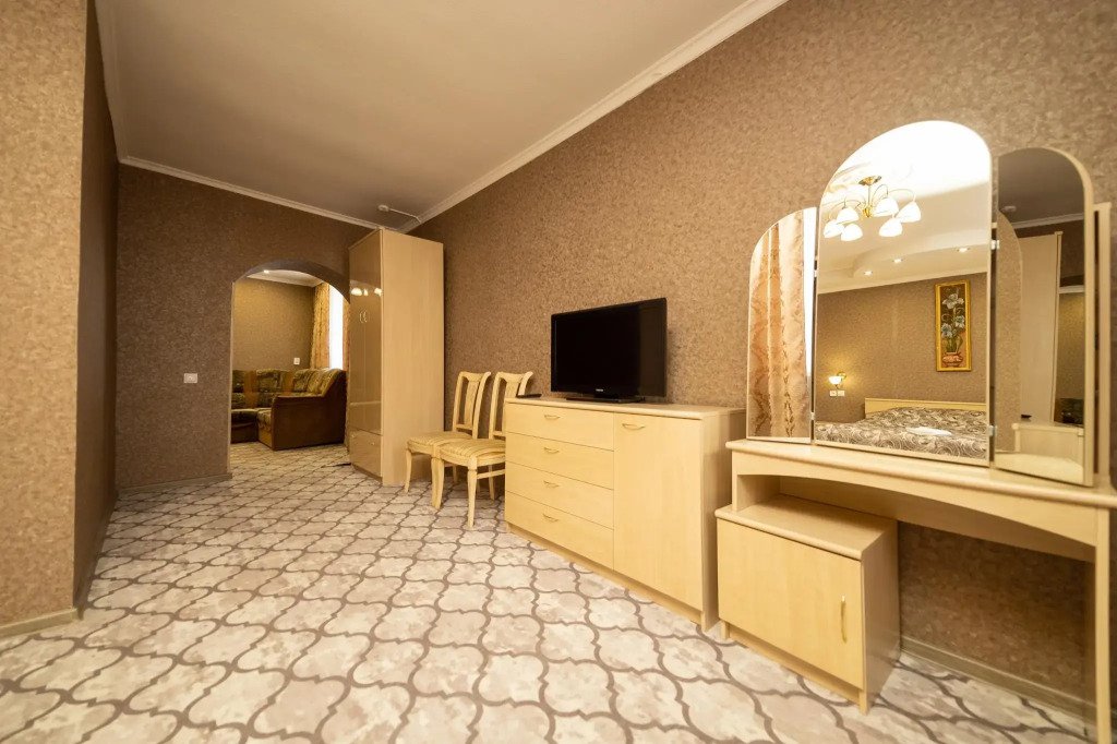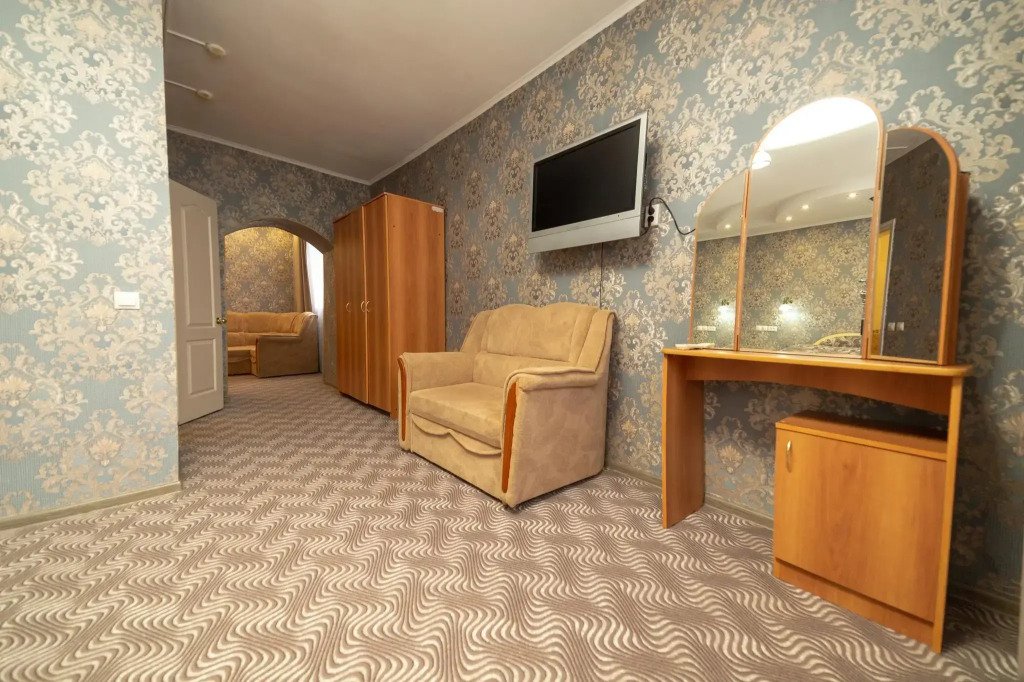 В номере вы найдёте телевизор. Оснащение зависит от выбранной категории номера.