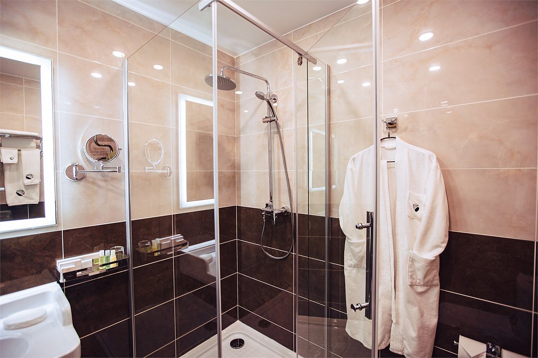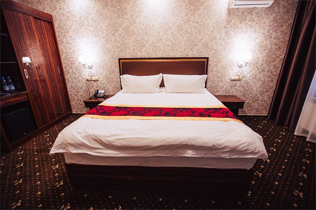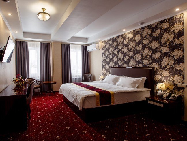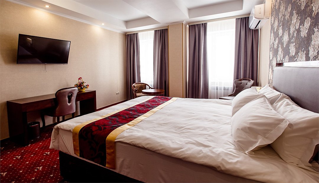 телевизор, Wi-Fi, интернет, кондиционер, светильник, настольные лампы, фен, электронные замки, душевая кабина, теплый пол, халаты, банные полотенца, тапочки, косметические средства, кровать «King size», односпальная кровать, ортопедический матрас, кресла, вешалки, багажная тумба, зеркало, мини-бар, письменные принадлежности, чайный набор, сейф, чайник, унитаз, раковина, косметическое зеркало, питьевая вода, ковровое покрытие, отопление, душ, вид на город, кресло, вид во двор, высокие потолки, столовые приборы, стол, туалетные средства, сплит-система, цифровое тв, внутренний телефон, телевизор с плоским экраном, мини-холодильник, москитная сетка, номер для некурящих, без питомцевВ номере