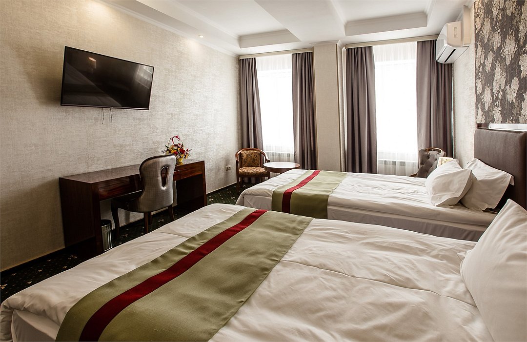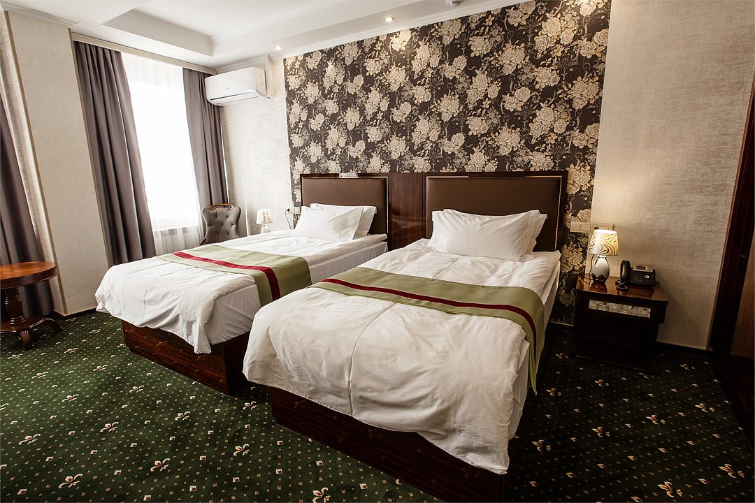 кабельное телевидение, Wi-Fi, интернет, кондиционер, светильник, настольные лампы, фен, электронные замки, душевая кабина, теплый пол, халаты, тапочки, косметические средства, две односпальные кровати, стулья, вешалки, журнальный столик, багажная тумба, зеркало, мини-бар, письменные принадлежности, чайный набор, сейф, чайник, унитаз, раковина, косметическое зеркало, питьевая вода, ковровое покрытие, душ, вид на город, кресло, вид во двор, высокие потолки, столовые приборы, стул, телевизор с плоским экраном, мини-холодильник, москитная сетка, шкаф-купе, номер для некурящих, рабочий стол, без питомцевВ номере