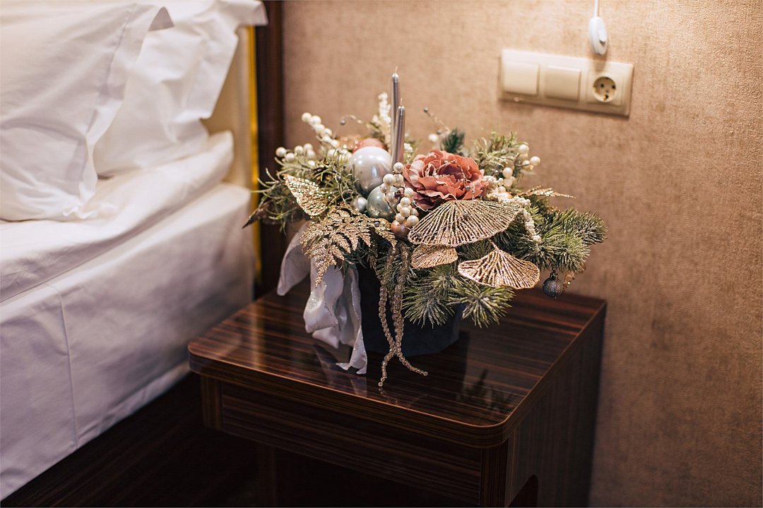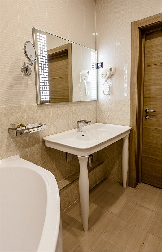 • система «Умный дом»; • централизованная система управления климатом; • комфортный матрас «Аскона»; • сейф с электронным замком, зарядные USB-порты у стола и прикроватных тумбочек, • просторная ванная комната с тропическим душем, встроенной в зеркало подсветкой для обеспечения максимального комфорта, фен; • косметические средства RELAX REFRESH REVIVE.Услуги и удобства