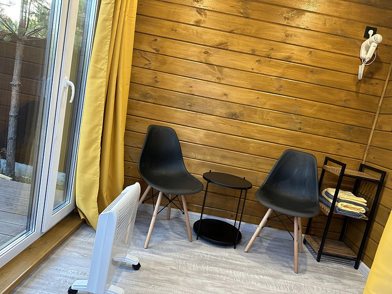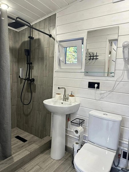 Инфраструктура: зона отдыха, душБаня на дровах с панорамными окнами для созерцания природы, с возможностью выпить горячий чай и отдохнуть душой. В бане есть тропический душ, фен и место для отдыха.