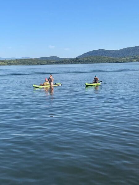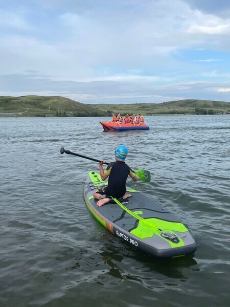 Катание на надувном банане. Спокойная прогулка по озеру Белое, подходит для тех, кто хочет посмотреть озеро и его окрестности с воды. Спасательные жилеты входят в стоимость проката. Расчет за прокат происходит непосредственно перед катанием.