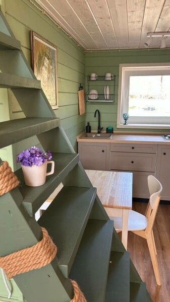 Дом солнца первым встречает рассвет. Яркий, теплый интерьер и качель внутри.