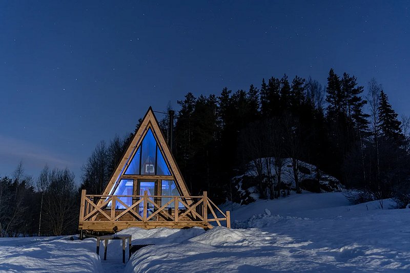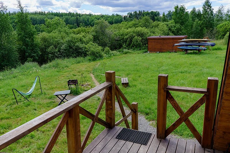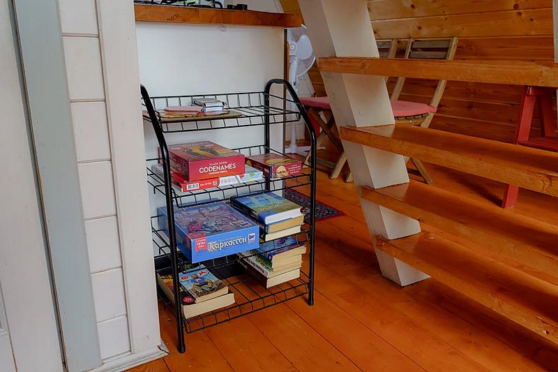 Круглый год — высыпаться, замедляться, отдыхать от города и информационного шума. Гулять по лесу и скалам. Сидеть с книжкой или глинтвейном у камина, играть в настолки (в каждом доме есть небольшой набор). Ловить рыбу (спиннинг — 500 ₽/день). Париться в бане (3000 ₽ за 2 часа, далее 1000 ₽/час, вместимость до 4 человек).