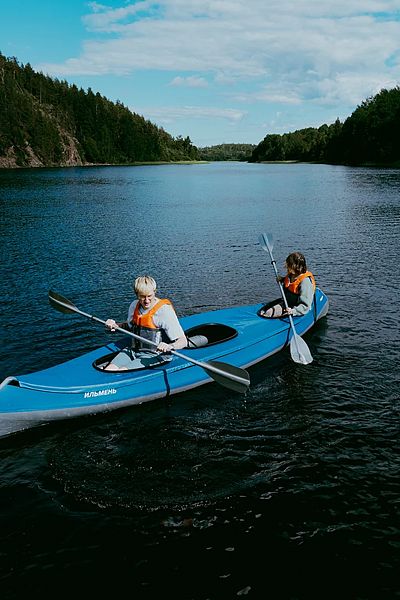 Сдаются в аренду одно-, двух- и трехместные байдарки для путешествий по Ладожским шхерам. Использование спасательных жилетов на воде обязательно, жилеты предоставляются.