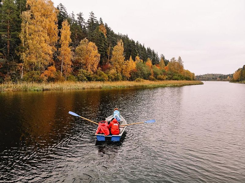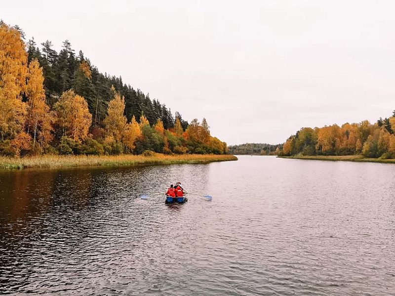 Возьмите на прокат лодку, чтобы неспеша проплыть по спокойным водам Нейсмери — залива Ладожского озера. С воды открывается потрясающий вид на высокие лесистые скалы, до которых можно добраться только водным путем.
