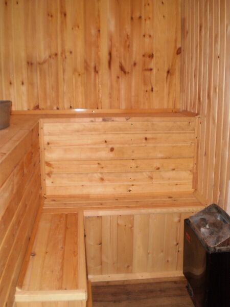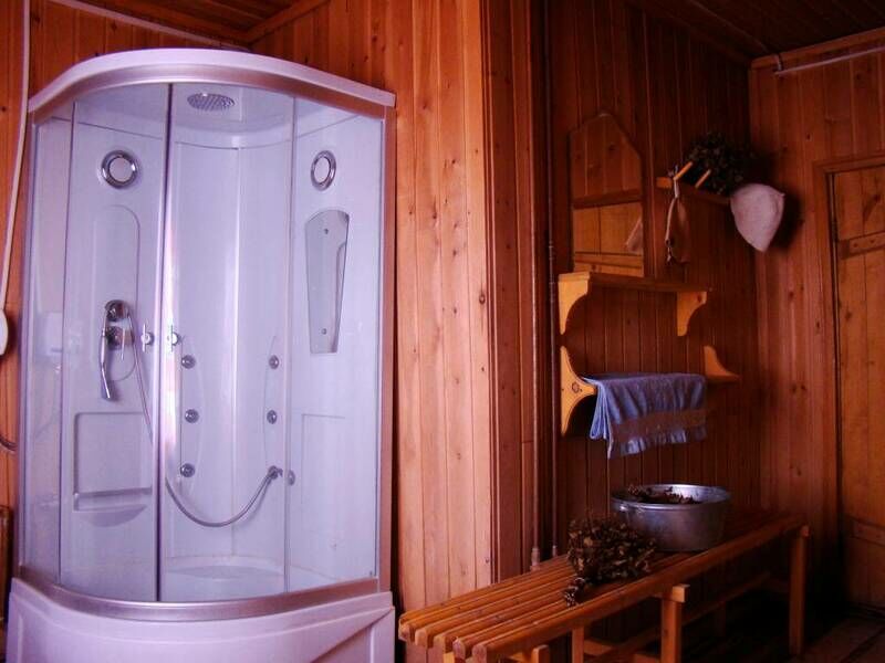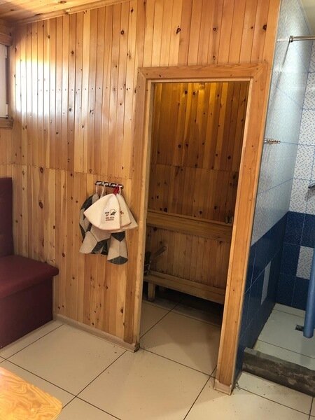 Зона отдыха на 10 человек. Раздевалка и помывочная. Парилка до 4 человек.
