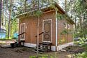 Одноэтажный современный коттедж мини-бунгало 24 м², на 2 основных и 2 доп. места. В домике: мини-кухня (холодильник, микроволновка, чайник, посуда, раковина), гостиная с раскладным диваном на 2 доп. места и панорамными окнами на озеро Сямозеро, спальня с большой кроватью на 2 основных места, душевая комната (раковина, душевая и туалет).