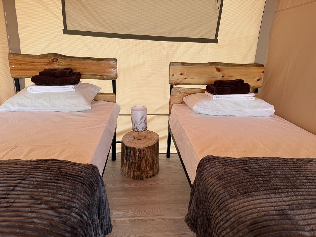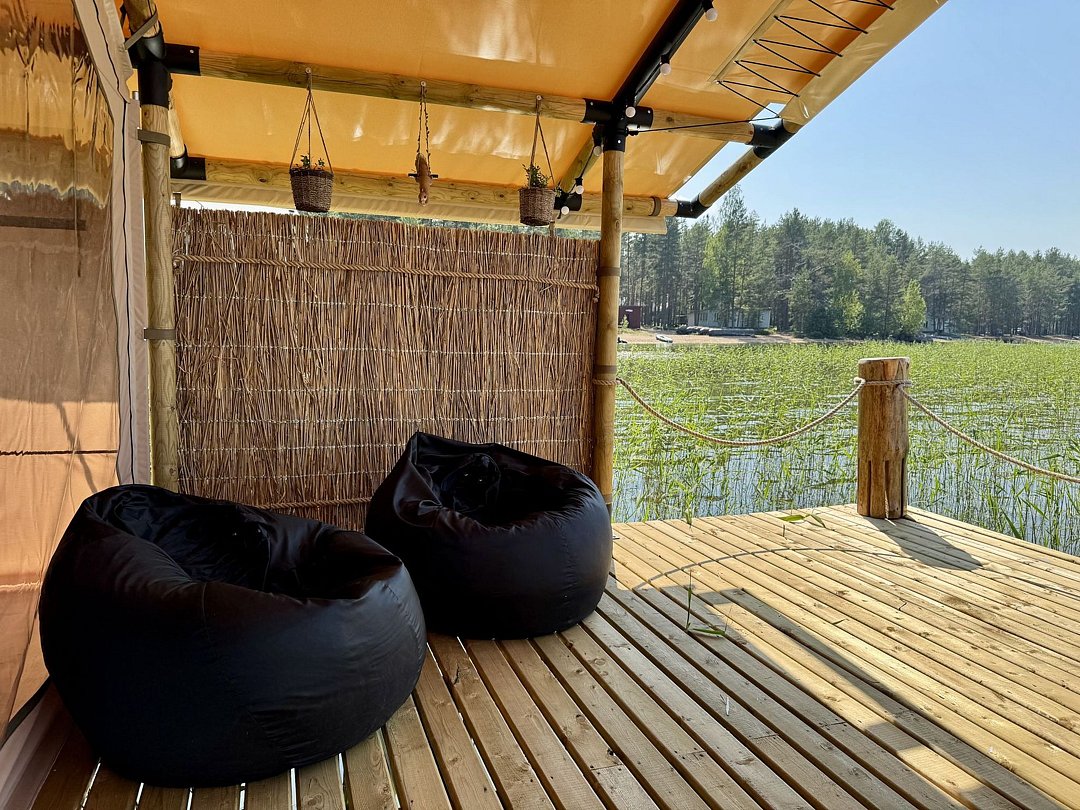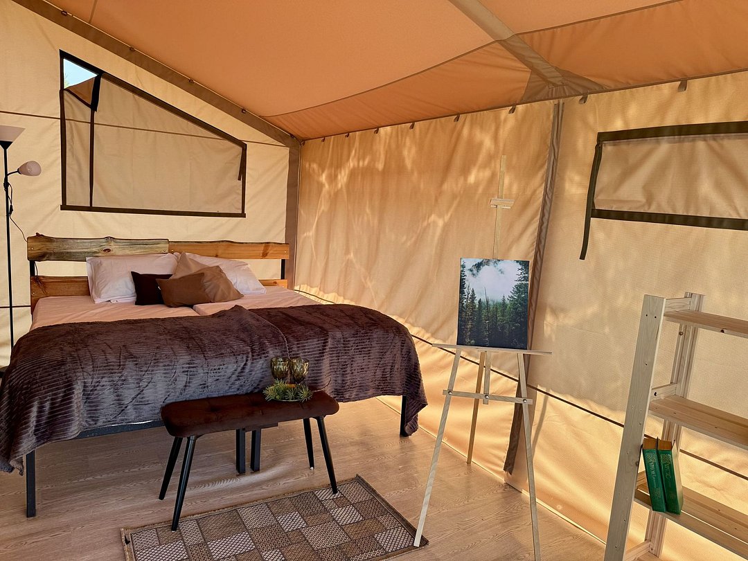 На территории располагаются пять глэмпинг палаток, каждая вмещает от двух до четырех человек. Треск дров от костра, пение птиц по утрам, стрекот сверчков, звёздная панорама прямо с террасы вашей палатки, близость к природе — все это оставляет незабываемые впечатления об отдыхе.