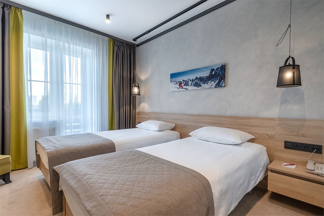 Стандартный номер с одной двуспальной или двумя односпальным кроватями.