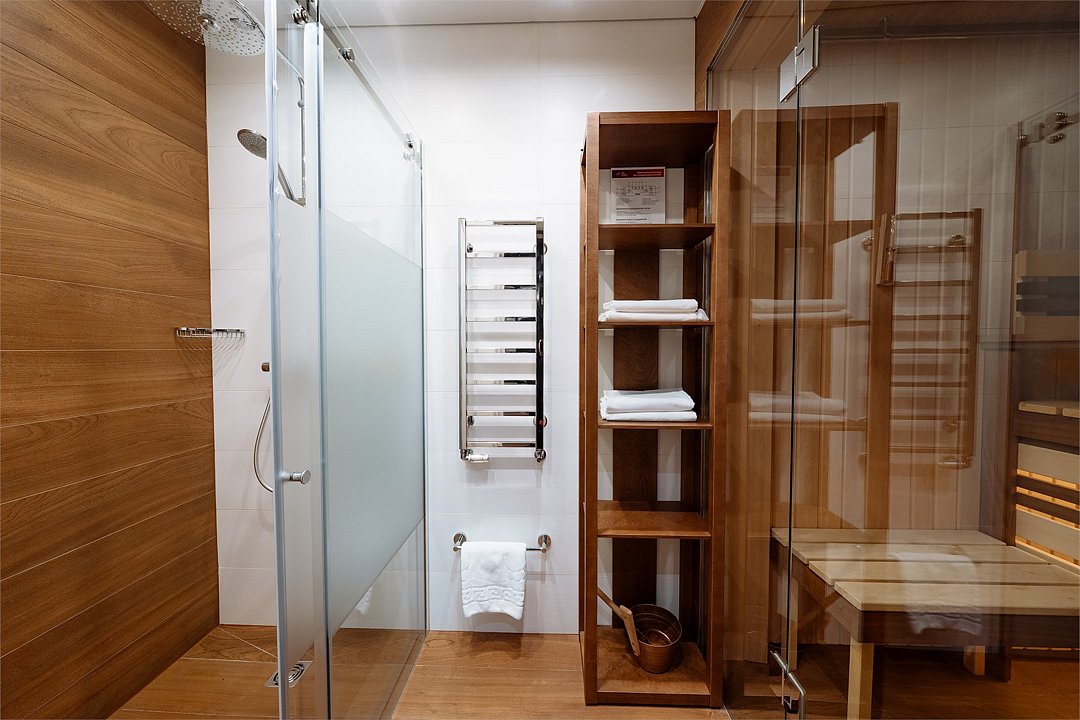 В банной зоне есть место для одной из любимых русских традиций — приготовления шашлыка. В закрытой зоне можно быстро приготовить мясо или рыбу на мангале.