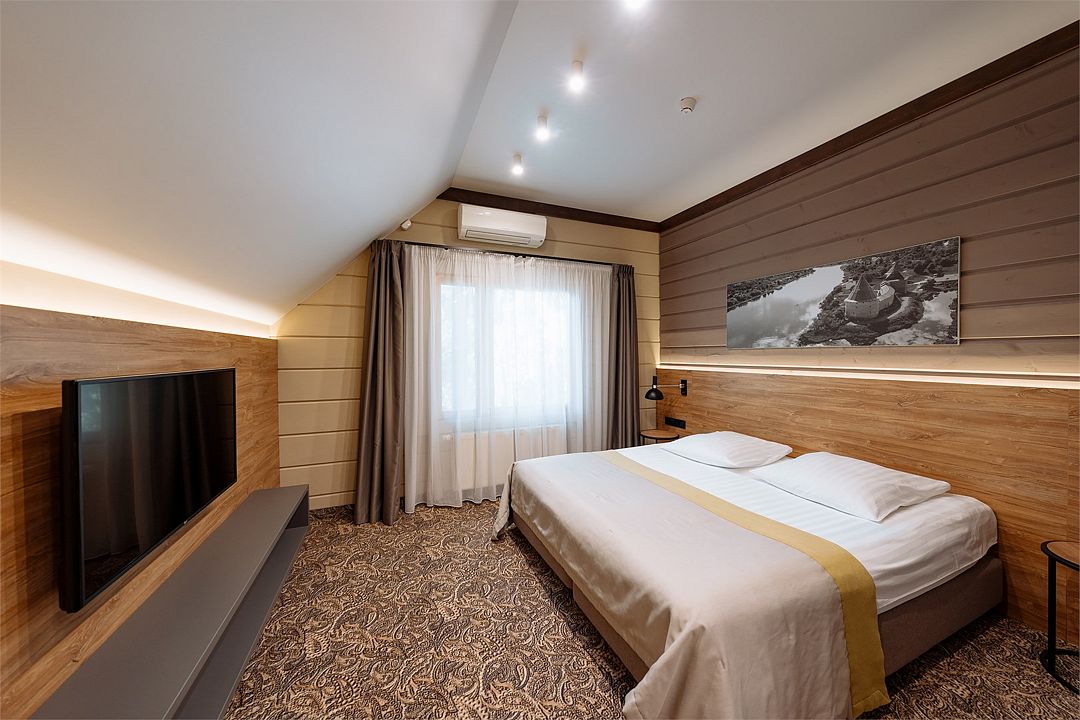 Расположенный на 130 гектарах, комплекс предлагает разнообразные варианты размещения: главный отель, комфортабельные коттеджи с каминами и апартаменты. Все номера оснащены современной мебелью и техникой.