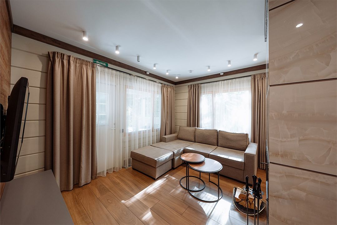 Огромное количество доп услуг, мы пользовались зимой спа-центром, летом брали в прокат велосипеды и играли в мини-гольф