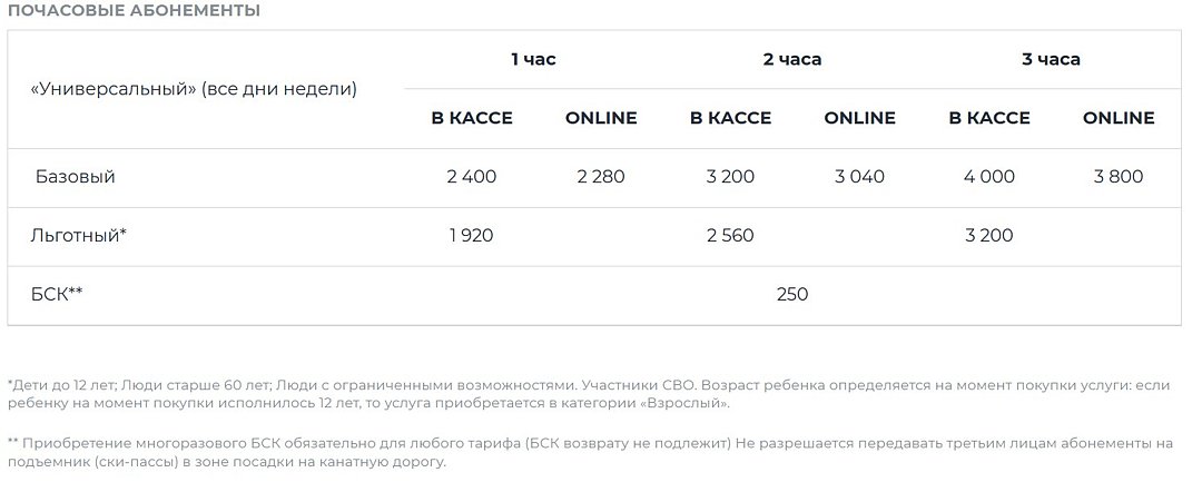 - единоразовый спуск за зиплайне. Пользование троллей парком (Zipline) возможно в зависимости от погодных условий, режима работы троллея, доступности услуги;