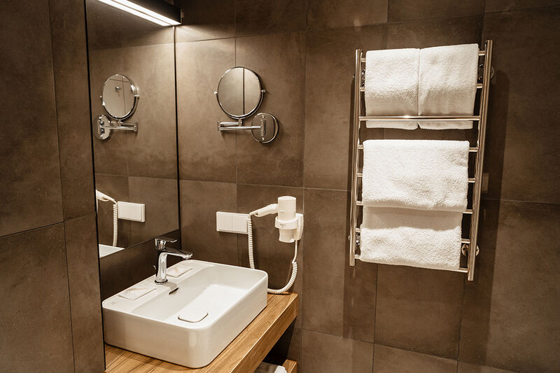 В номерах есть всё необходимое для загородного отдыха: телевизор, кондиционер, сейф, мини-бар и душевая кабина, Wi-Fi.
