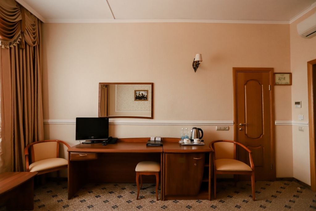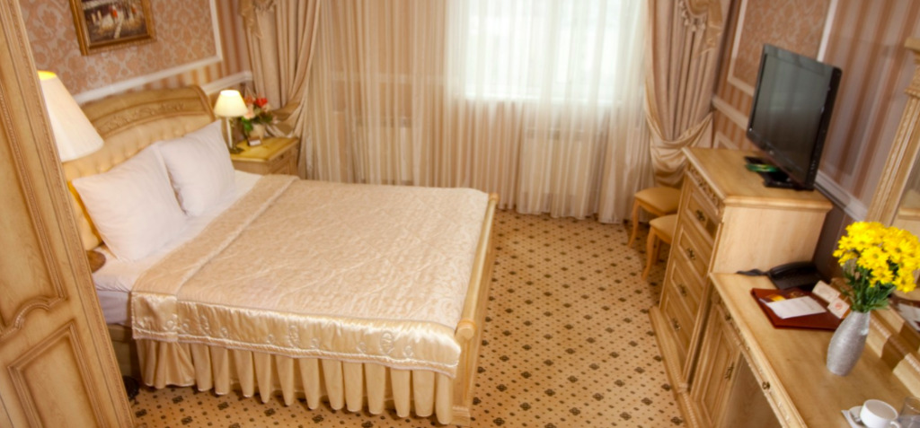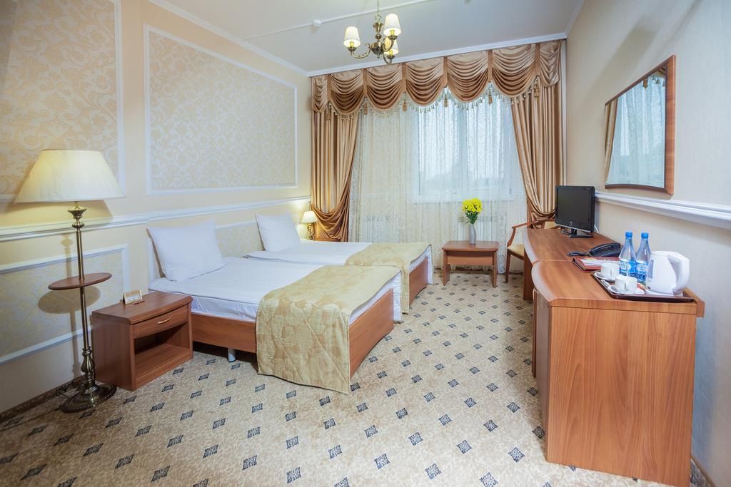 Семиэтажное здание отеля возвышается на тихой центральной улице Курска. В распоряжении гостей 67 классических номеров различной категории комфортности. В каждом номере есть санузел с душевой кабиной, набор туалетных принадлежностей, кондиционер, ЖК-телевизор, электрочайник, мини-холодильник. Улучшенные номера оснащены гидромассажной ванной и гостиным уголком с мягкой мебелью.