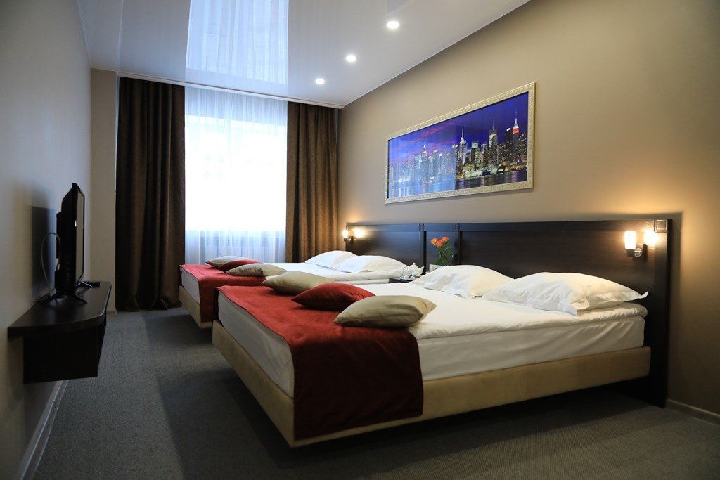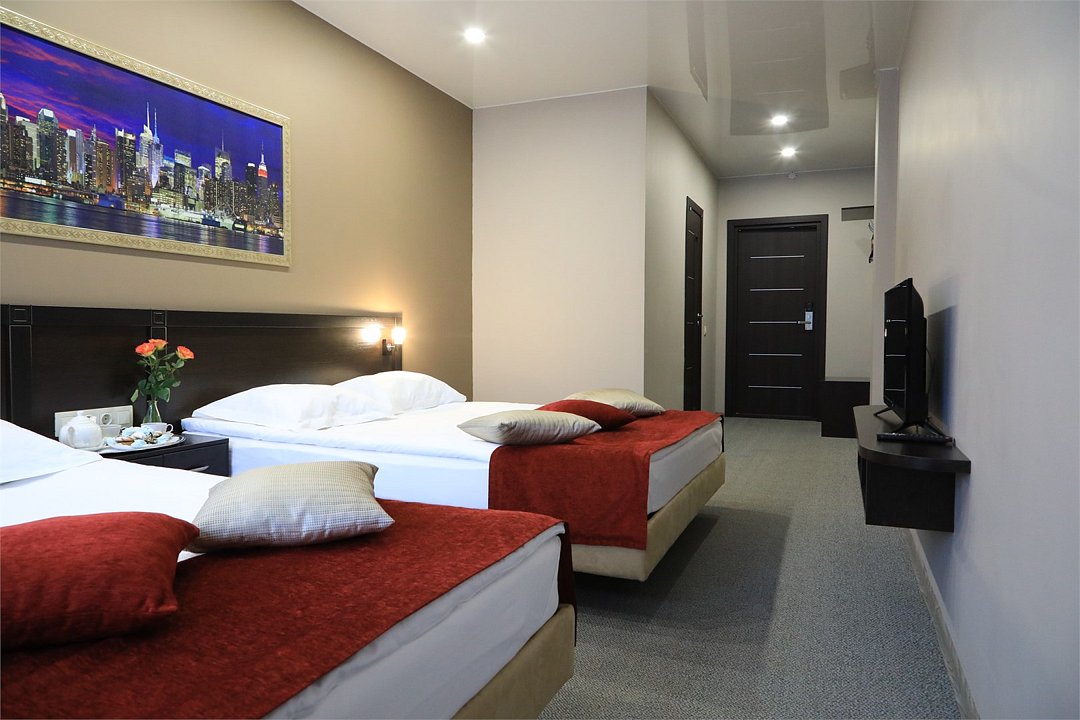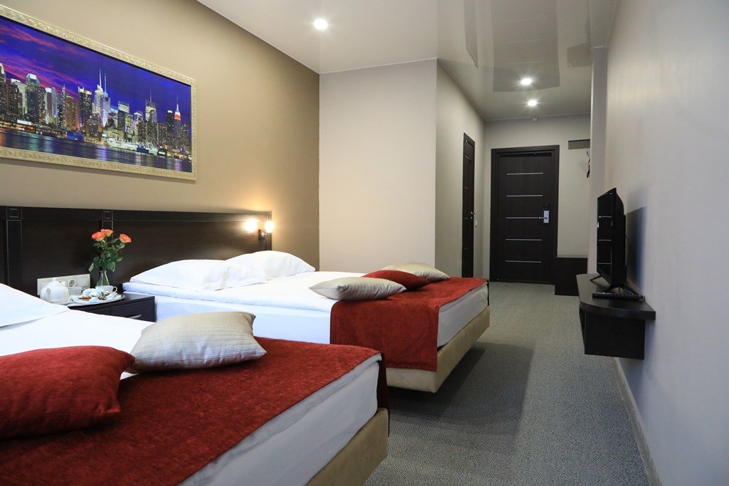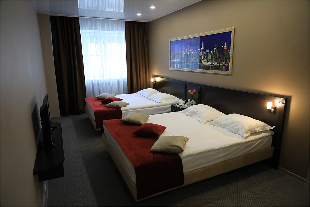 Современный номер с двумя двуспальными кроватями, площадью 28 кв.м – прекрасный вариант для тех, кто путешествует в компании с другом или коллегой. Здесь вы найдете комфорт, полноценный отдых и вдохновение для плодотворной работы.Услуги и удобства