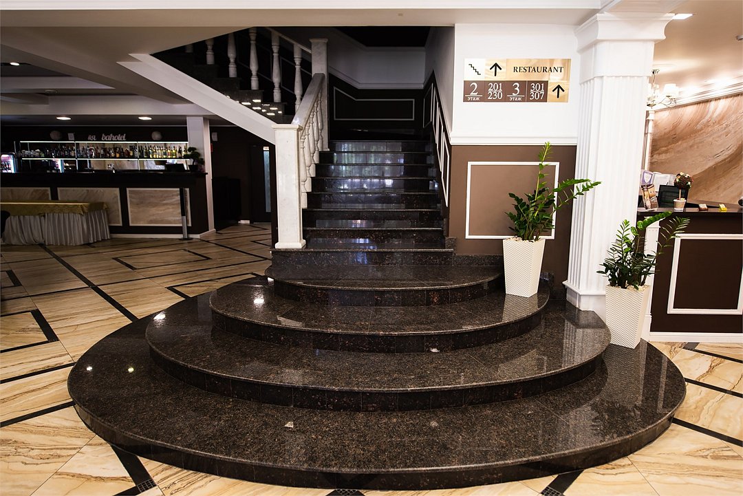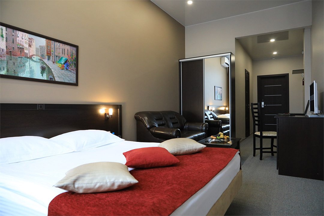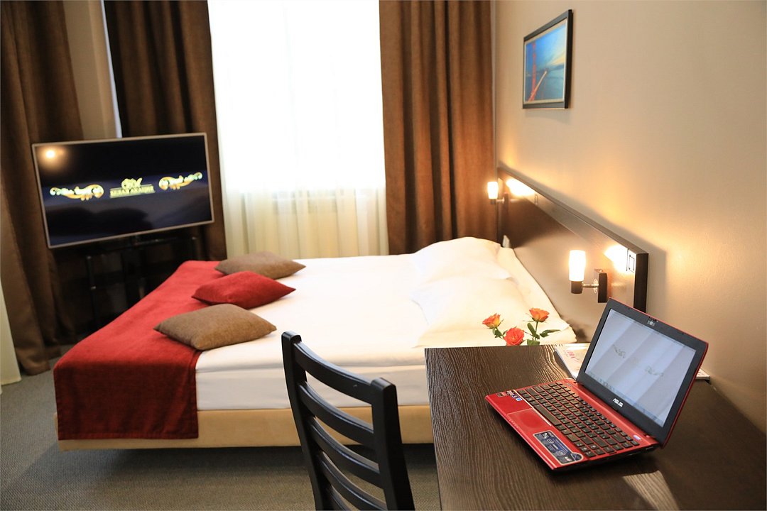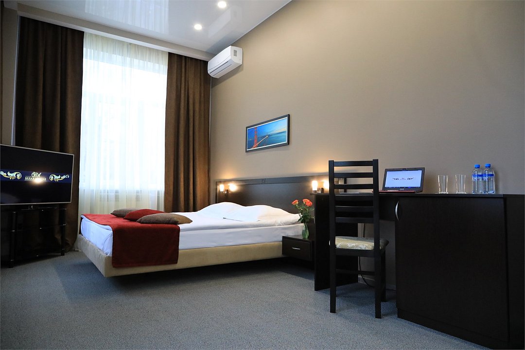 Двухэтажное здание отеля находится на одной из главных улиц района — 50 лет Октября. Жилой фонд включает 50 номеров разных категорий — Стандарт, Бизнес, Студия, Улучшенный. Все номера укомплектованы современной удобной мебелью, бытовой техникой — телевизором, кондиционером, холодильником и оснащены ванной комнатой с душем.