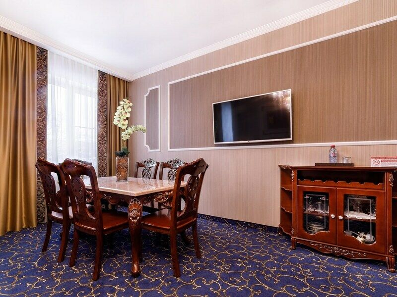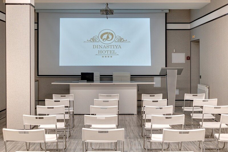Конференц-зал отеля "Династия" предоставляет возможность проведения конференций и обучающих семинаров, а также комфортную атмосферу для бизнес-встреч. По дополнительному запросу возможно организовать кофе-брейк, обед, ужин. Комфортная посадка предполагает до 60 участников.