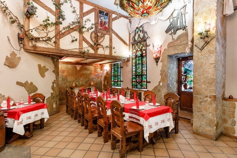 Ресторан «Диканька» предоставляет возможность попробовать лучшие стандарты украинской кухни и воспользоваться услугой рум-сервис по доставке блюд в номер отеля.