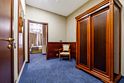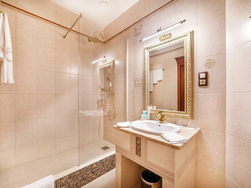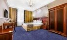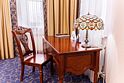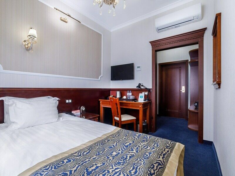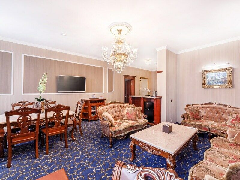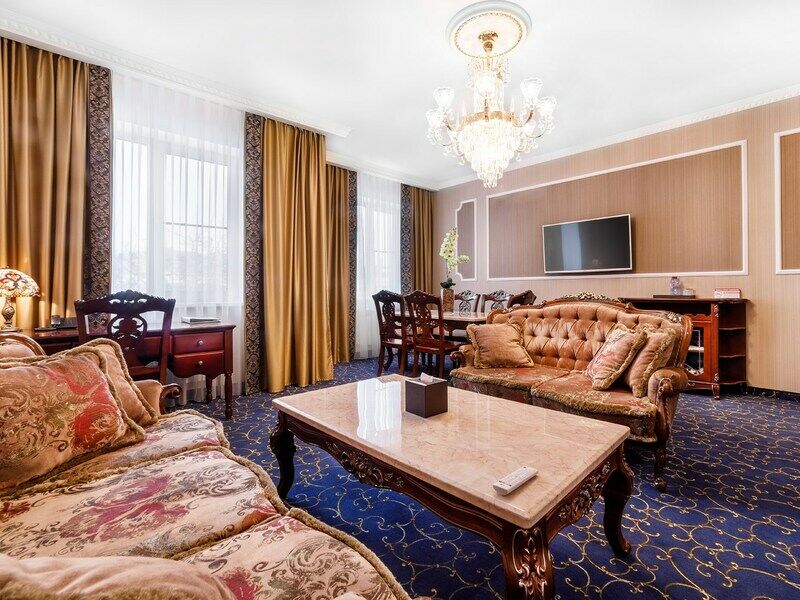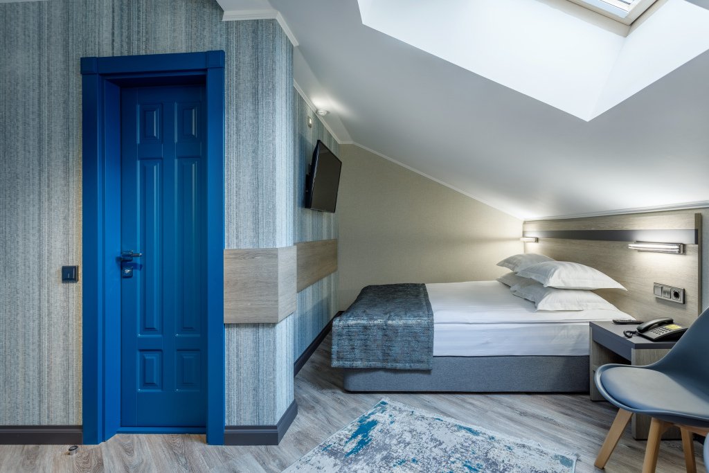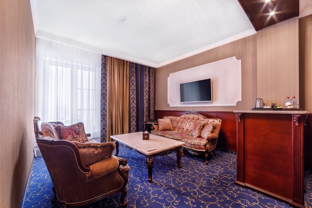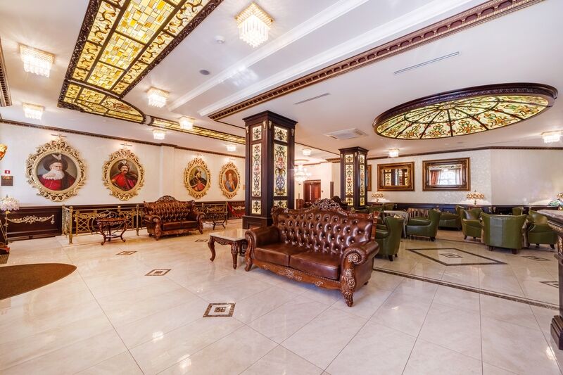 Шестиэтажное здание отеля, оснащенное лифтом, стилизовано под европейский замок. Гостей ожидают номера разного уровня комфорта — от Стандарта до 3-х комнатного Люкса. Интерьеры выдержаны в изысканном классическом стиле с использованием пастельных, охристых и сине-голубых оттенков. Все номера укомплектованы качественной мебелью орехового цвета, необходимой бытовой техникой и оснащены санузлом с душевой кабиной или ванной.