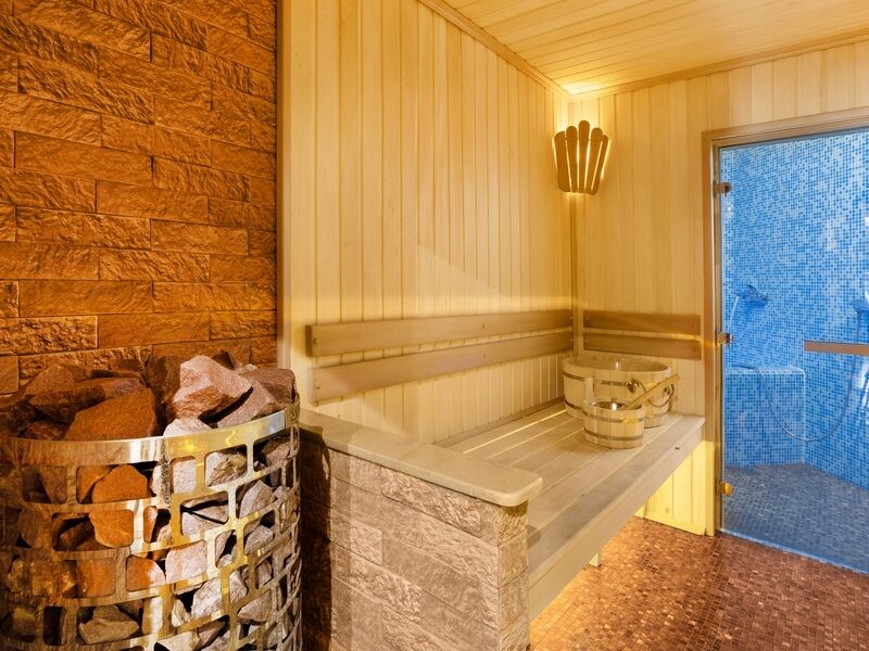 Инфраструктура: тапочки, купель, зона отдыха, полотенца, душ, халатыСауна
