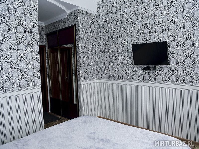 В номере имеется удобный шкаф-купе для одежды, стол. Ванная: джакузи, унитаз, умывальник, зеркало. Полотенца, туалетные принадлежности. Также предоставляются кухонные принадлежности и посуда.