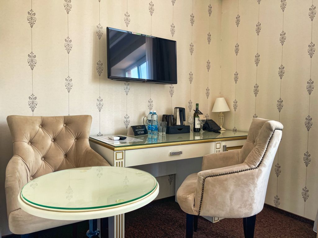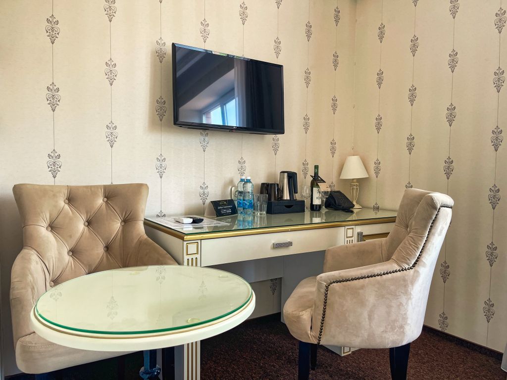 Deluxe suite with mini-bar, flat-screen TV and electric kettle, air conditioning, hairdryer, Wi-Fi, bathrobes, slippers, hygiene products.Услуги и удобства