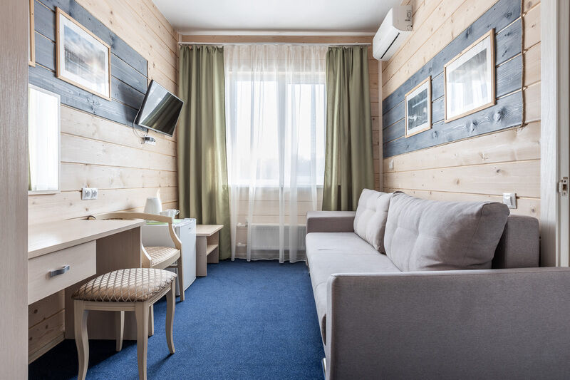 однокомнатный номер с прекрасным видом на волжскую протоку подходит как для семейного отдыха, так и для проживания во время деловой поездки. Вместимость: 2 основных мест, возможно размещение дополнительного места. Оснащение: 2 кровати "Сомье", кондиционер, тумбочки, телевизор, мягкое ковровое покрытие, платяной шкаф, стол, зеркало, мини-холодильник, электрический чайник, санузел с душевой кабиной, балкон.