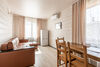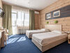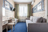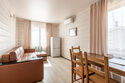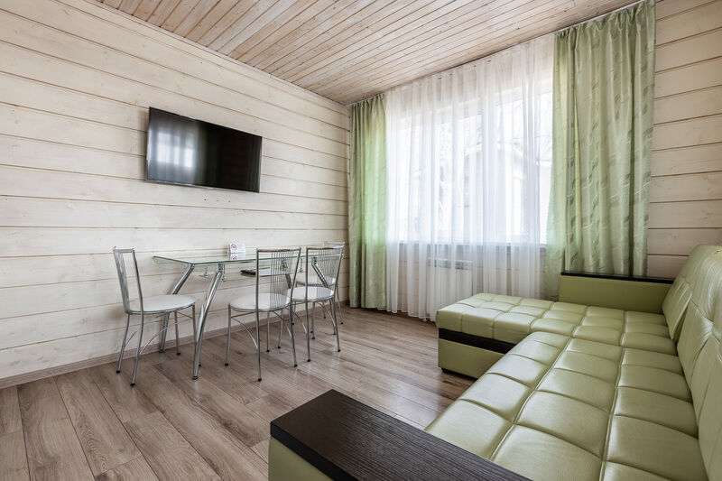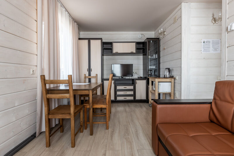 двухкомнатный номер. Вместимость: 2 основных места и 1 дополнительно с размещением на раскладном диване. Оснащение: 2 кровати "Сомье", раскладной диван, кондиционер, тумбочки, телевизор, мягкое ковровое покрытие, платяной шкаф, стол, зеркало, мини-холодильник, электрический чайник, санузел с душевой кабиной, балкон.