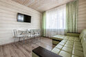 двухэтажный срубовой коттедж площадью 140 м. Вместимость коттеджа: 10 основных спальных мест + возможность размещения дополнительных спальных мест. Оснащение: