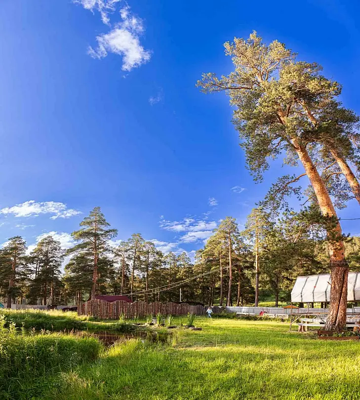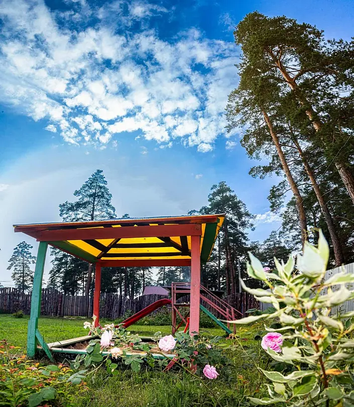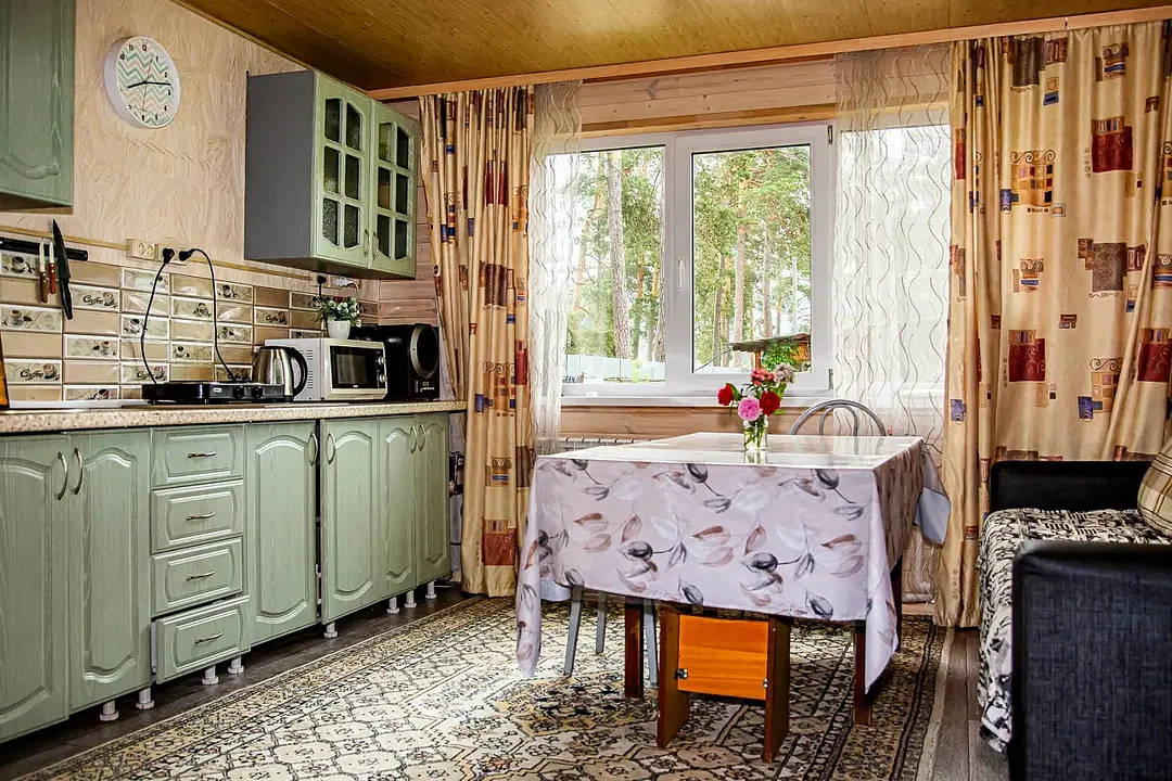 Вас будут ждать уютные домики, беседки для отдыха на природе и мангальные зоны с казанами. Есть дома с сауной, доступной за дополнительную плату.