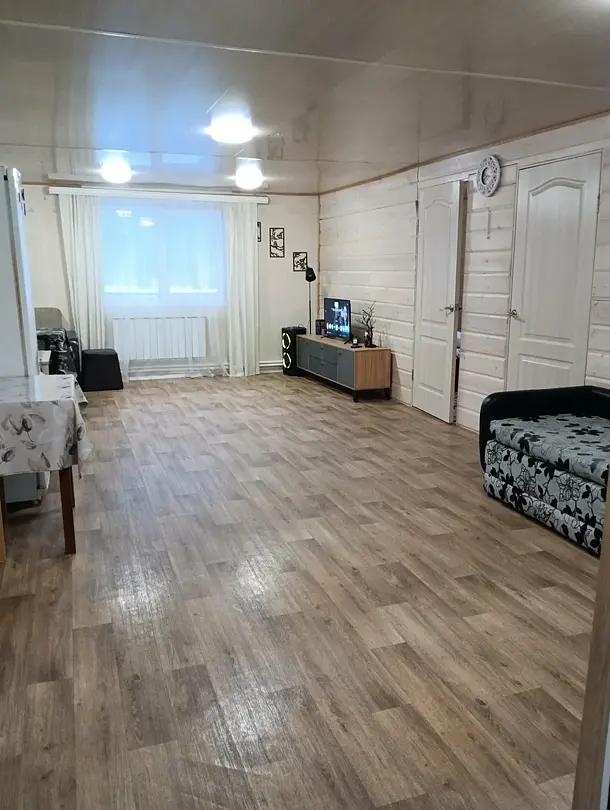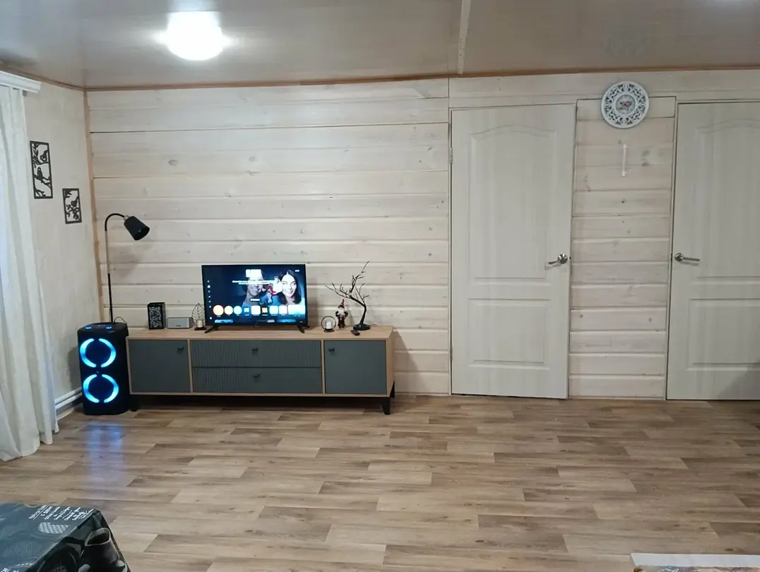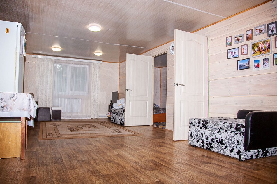 В доме 2 спальни, большой зал с кухонной зоной, санузел, душевая.