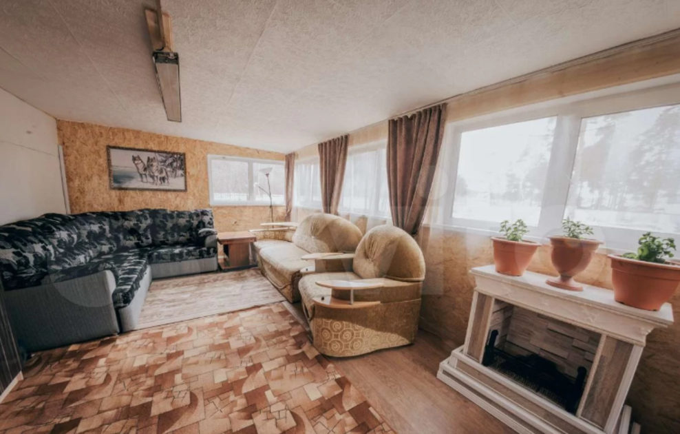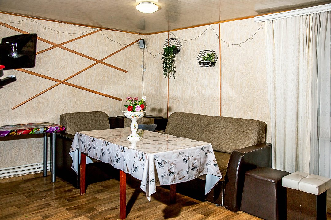 В доме большая тёплая и уютная терраса, где можно отдохнуть на мягких диванах.