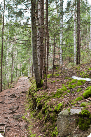 Маршрут "Горный" - протяженность 5 км, расположен на вершине горы Копанец. Чтобы попасть на этот маршрут необходимо следовать указателям и следам.