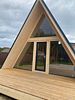 Уютный дом в стиле Афрейм, с панорамными окнами, с видом на лес.