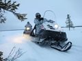 Катание на снегоходе по зимнему лесу - это одна из любимых всеми забава. К снегоходу крепятся сани, которые могут погрузить на себя от 2-х, до 4 человек.
