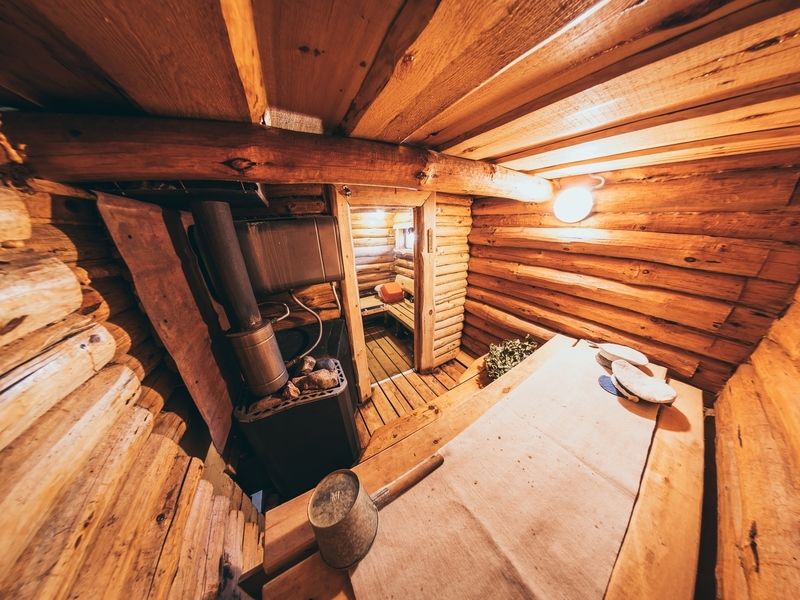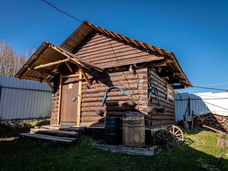 Баня рубленная из сосновых бревен, отапливается дровами. В бане парная отделена от мойки стеклянной дверью. Топится баня не менее 2-х часов, независимо от количества народа.