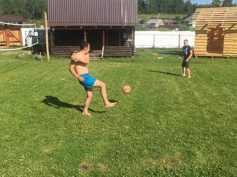 На территории базы натянута волейбольная сетка. Есть футбольные, волейбольные и детские мячи. Также есть 2 набора бадминтона. Настольные игры. На территории поляны можно ходить босиком не опасаясь наступить на стекло и т.д. Территория базы огорожена забором, что позволит не думать о безопасности. На территории можно припарковать машину.