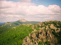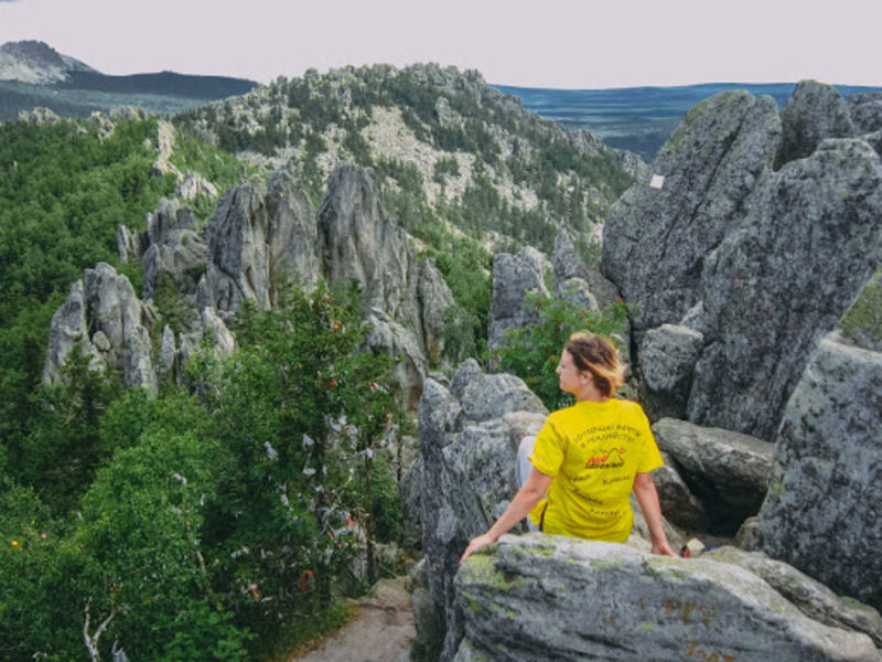 На вершине горы открывается вид сразу на 2 хребта национальных парков "Таганай" и "Зюраткуль".