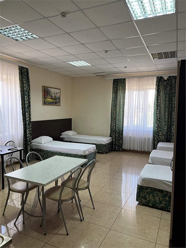 Большой, просторный семейный номер. В номере находится 5 односпальных кроватей, душ, туалет, мини-кухня.Услуги и удобства